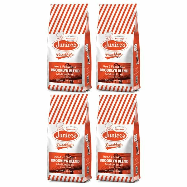 Junior’s Most Fabulous Brooklyn Blend, Medium Roast Ground Coffee, 4 Bags(12 oz each)